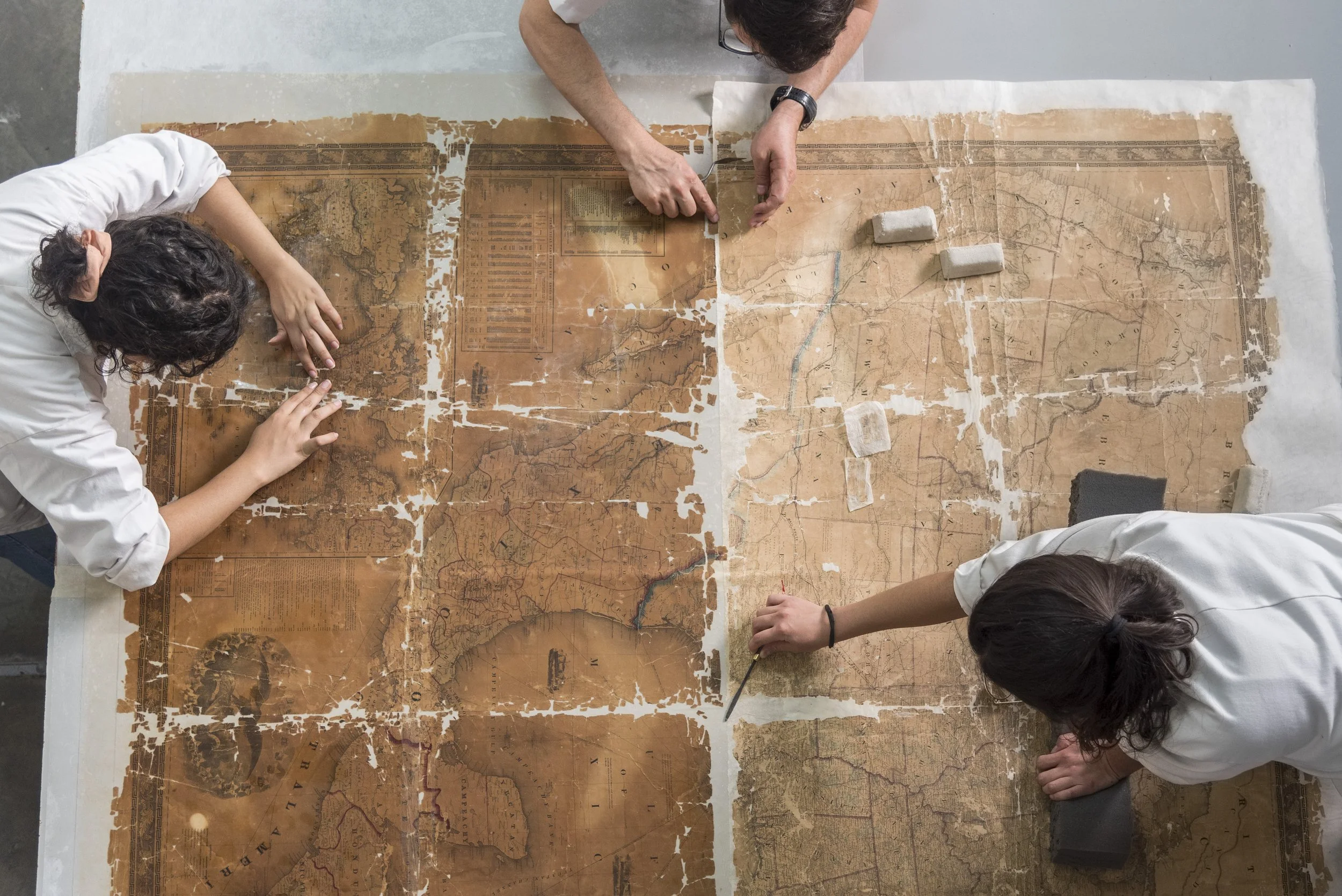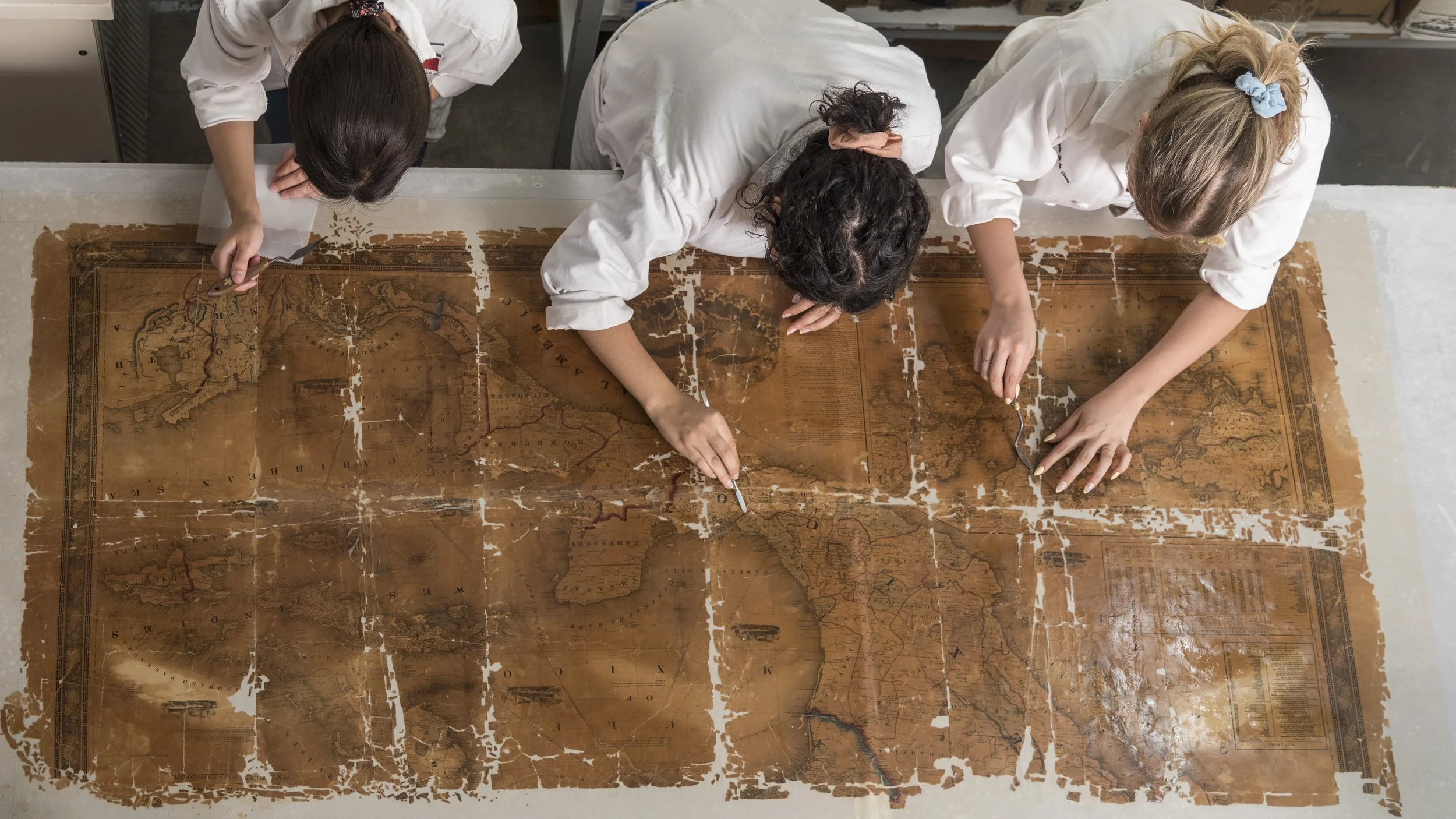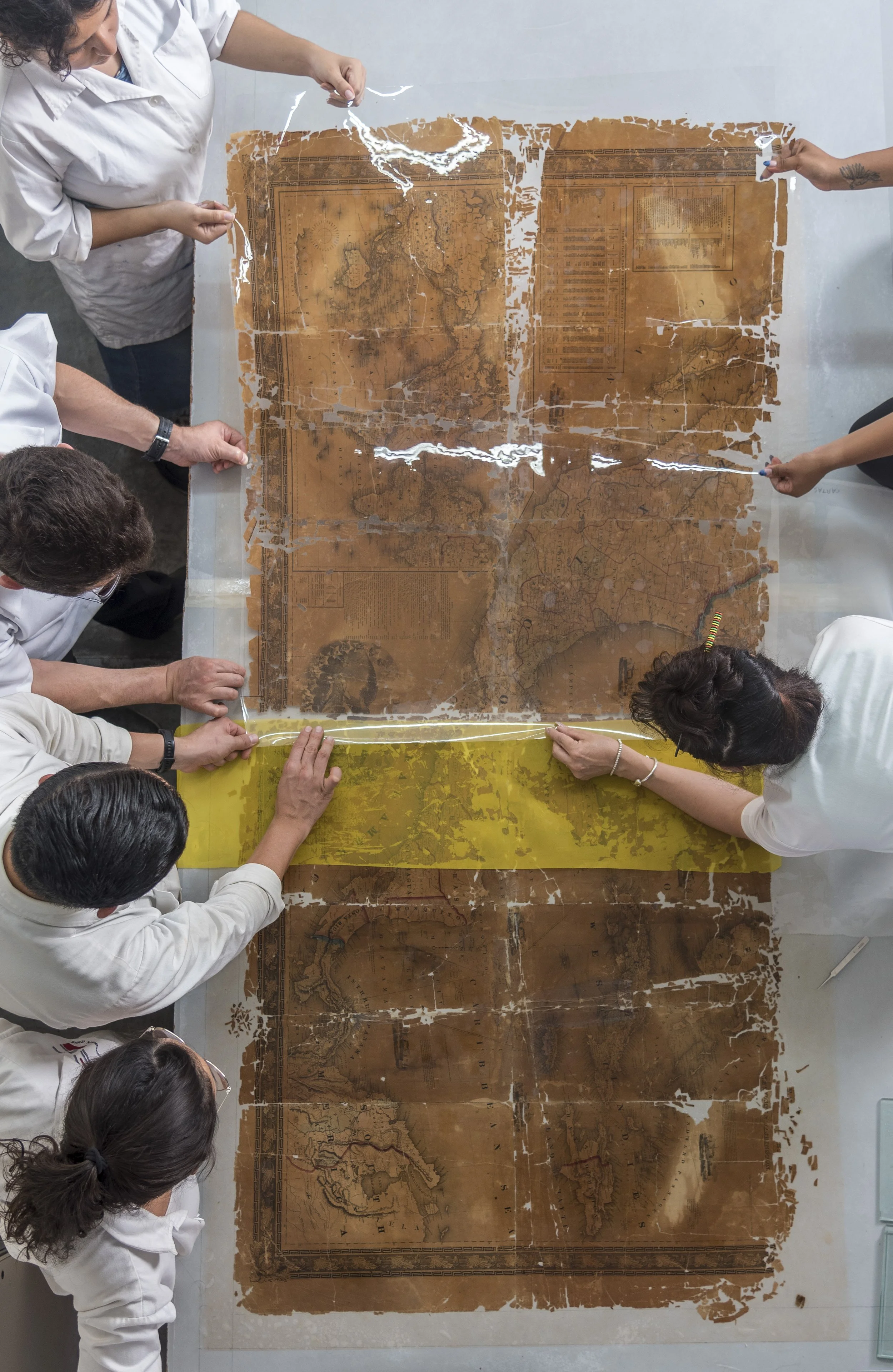 Esta pieza forma parte de la colección de la Mapoteca histórica del Centro Universitario de Ciencias Sociales y Humanidades (CUCSH) de la Universidad de Guadalajara (@udg_oficial) y fue intervenida el año pasado por estudiantes del Seminario-Taller de Restauración de Papel y Documentos Gráficos de la ECRO.